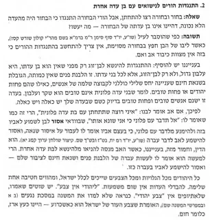 הרב כתב שם שלא צריך להקשיב להורים כי בעניין נישואים אין כיבוד הורים וגם כי ההורים אומרים לו בעצם לעבור על איסור (לשנוא עדה שלמה).