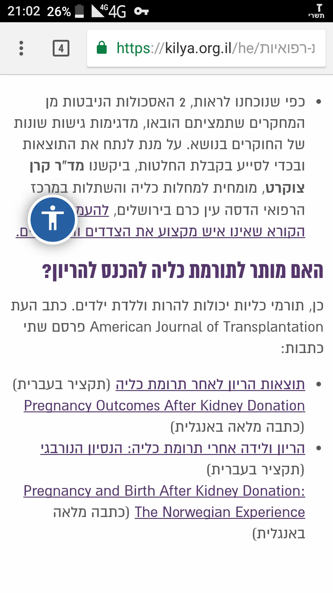 אפשר רק אחרי לידות. בשונה מאצל גבר, אצל אישה מחכים שהיא תסיים ללדת ורק אז מאפשרים לה לתרום כליה ככה שאת באמת חייבת קודם להתחתן בשביל זה...