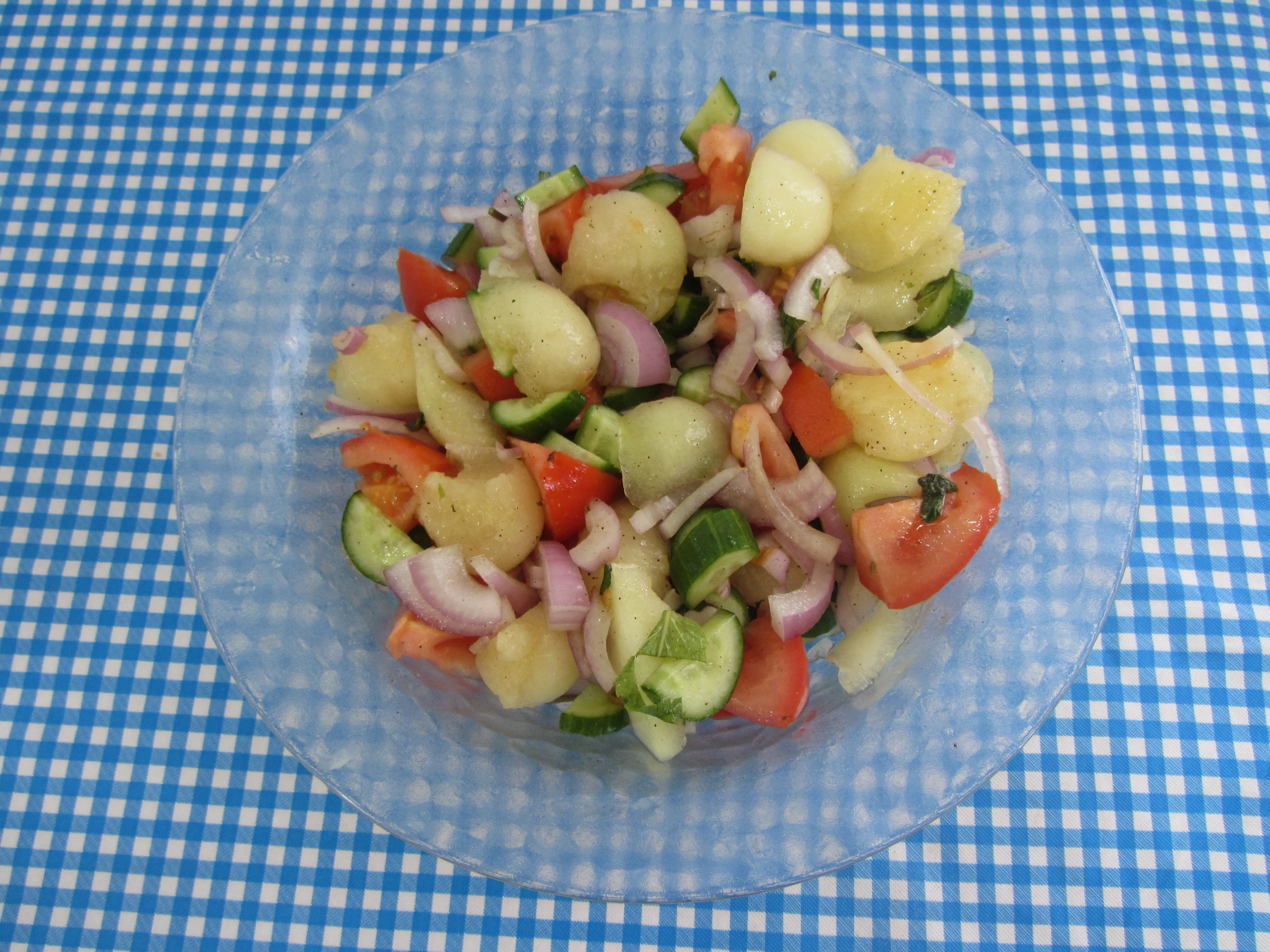 וסלט מלון עם עגבניות מלפפון ונענע