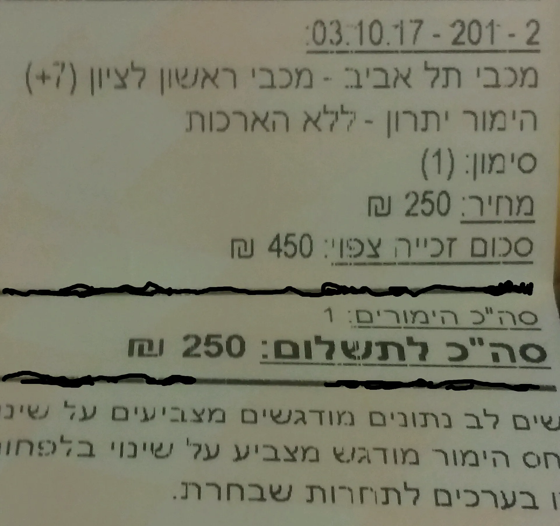 אז פשוט שמתי סכום גבוהה יחסית 250 שקל על משהו שהיה ברור לי כשמש שיקרה..