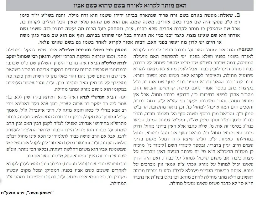 ב. שיש לאבא שם מיוחד, לדוגמא- מתושלח\ צלופחד, ואז אסור גם שלא לידו
