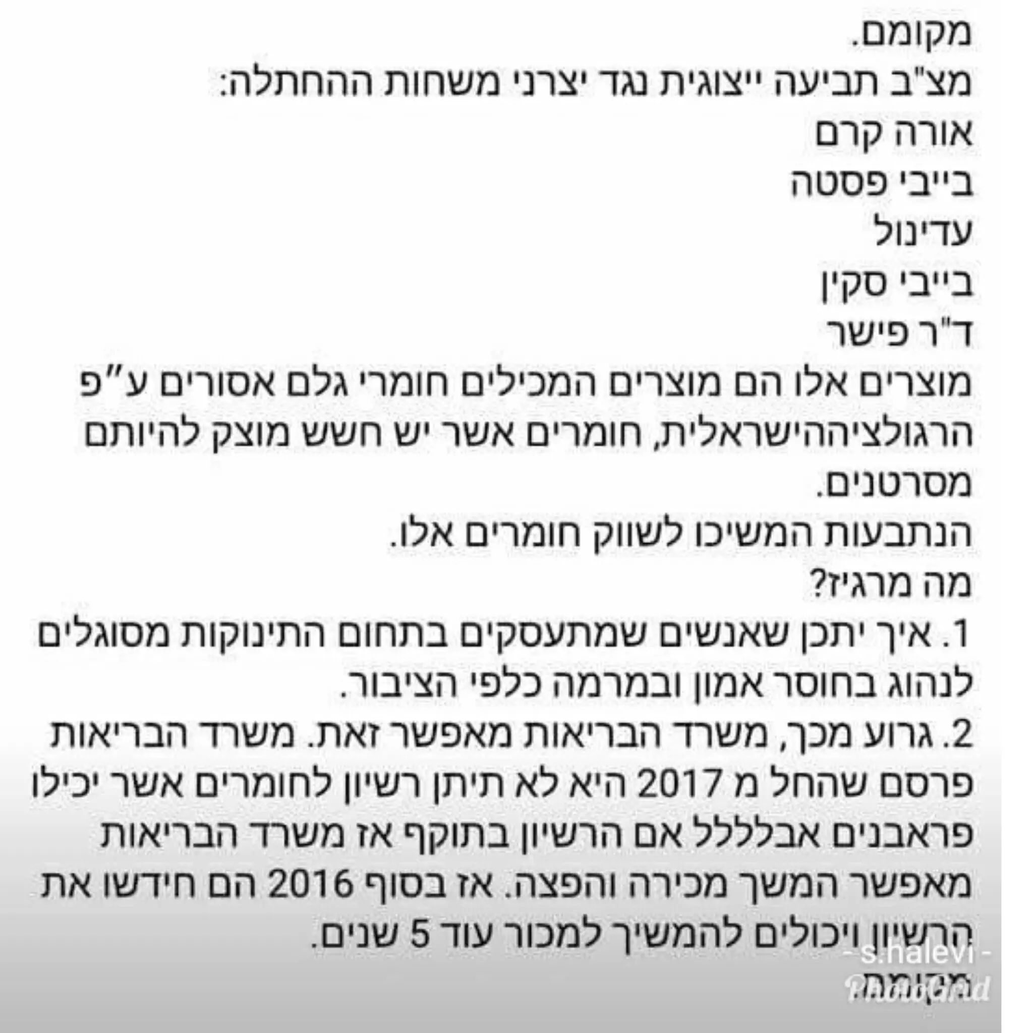 בגלל הכתבה שהייתה בערוץ 10 שיש בהן חומרים מסוכניםש.א הלוי