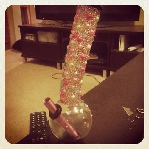 כלי לעישון מריחאונה המורכב מבקבוק ומצינורסתם פה