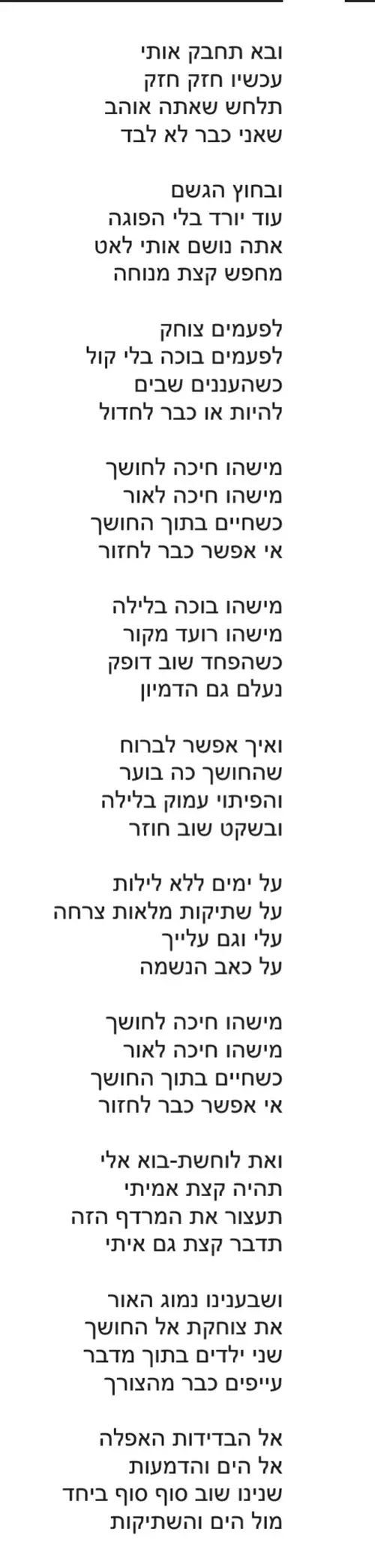 הוא היה מחפש את ההגיון הנסתר במילים, במנגינות, בעצב.