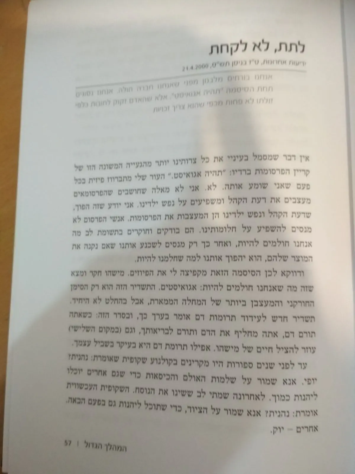 או את ההערצה לדור החלוצי הישן כאילו הם מלאכים ואנחנו בני אדם, או הם בני אדם ואנחנו כחמורים (ולא כחמורו של ז'בוטינסקי).