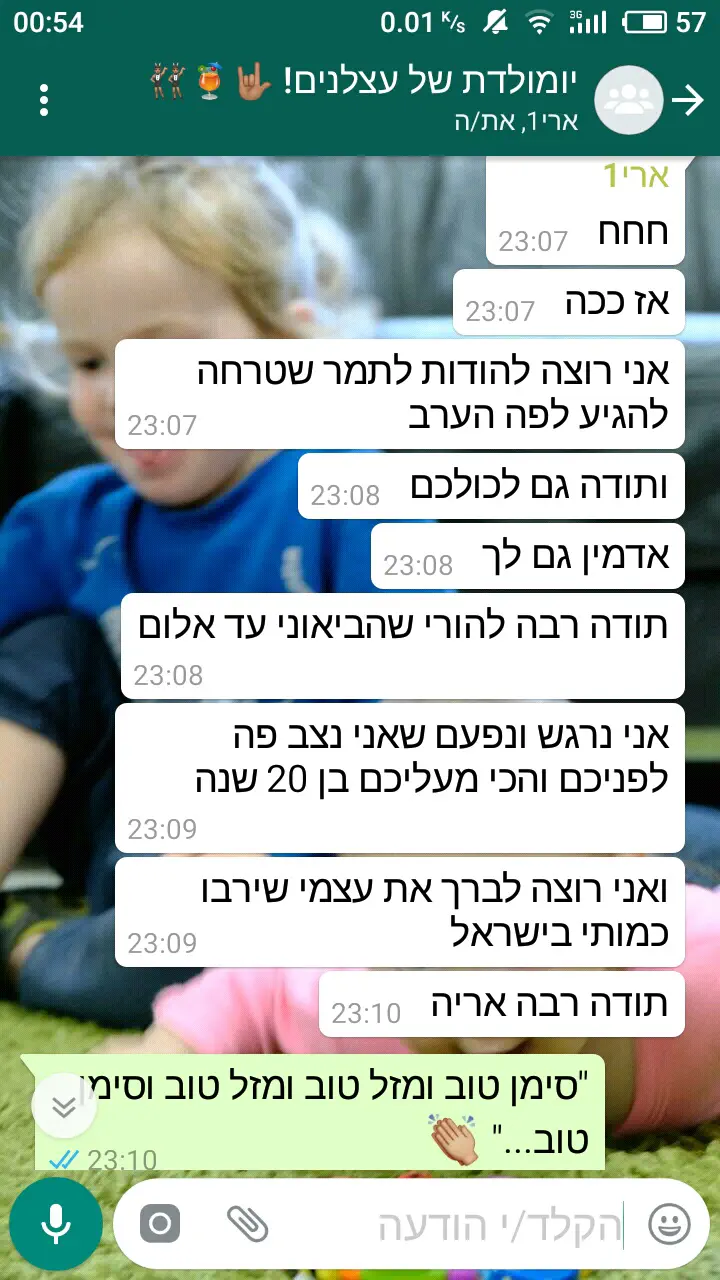 החגיגה תתקיים בקבוצת הווצאפ "יומולדת לעצלנים" שתקום היום בשעה 22:23:36.
