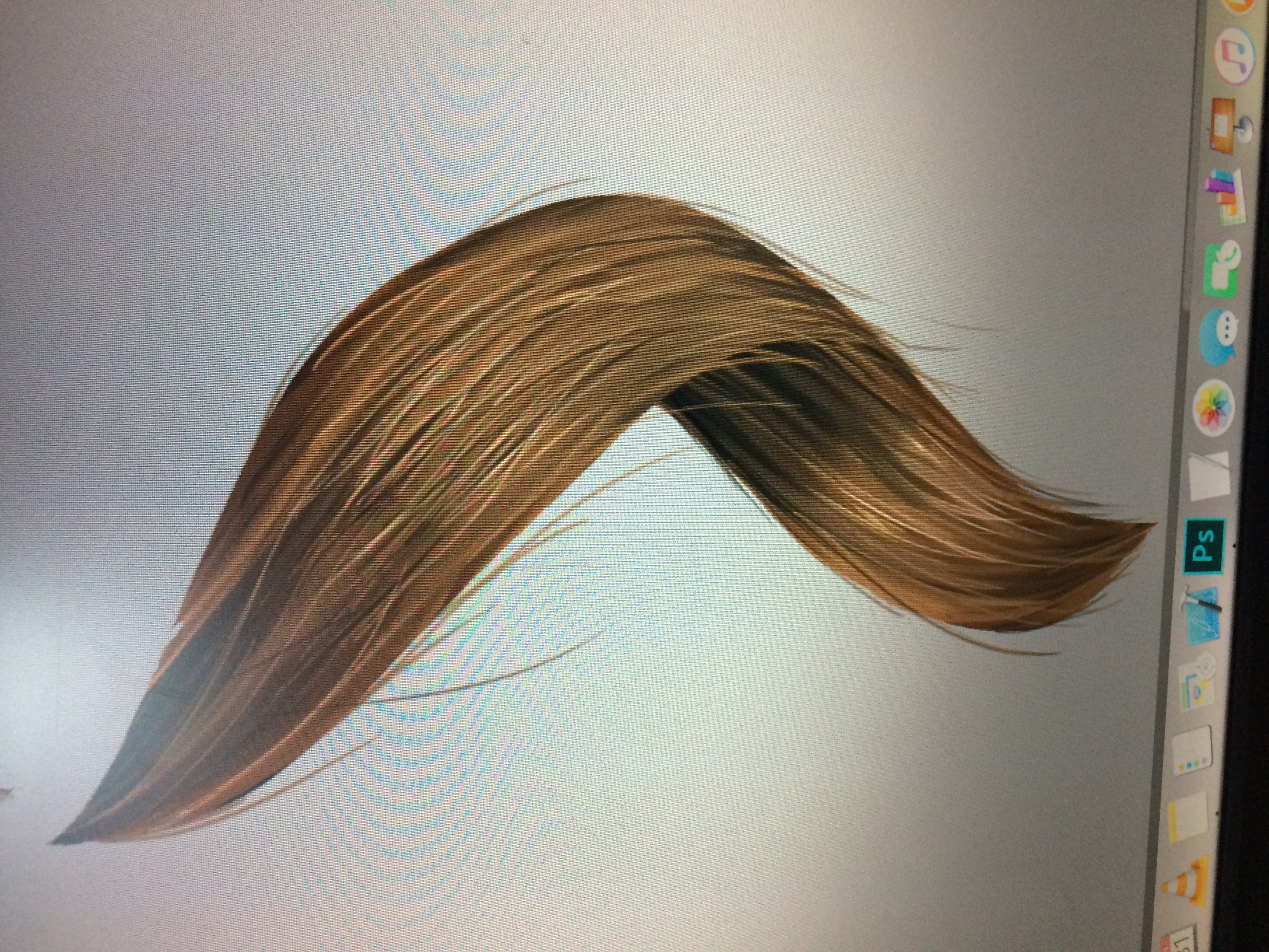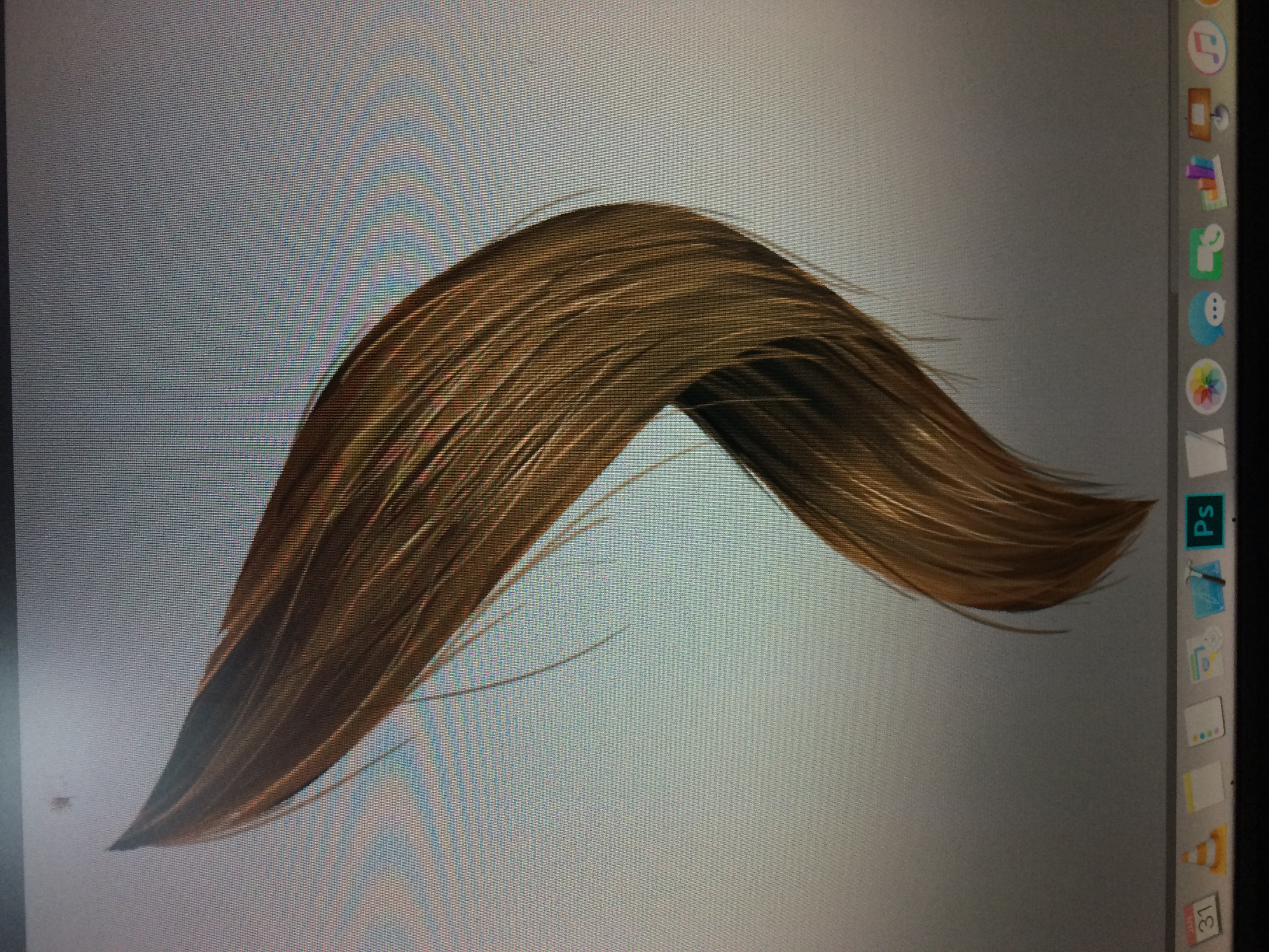 הבעיה שלי שזה אמור להיות שיער גלי וזה נראה נורא מלאכותי כשאני מציירת כל גל בפני עצמו. הסתכלתי על תמונות לנסות להבין את הדינמיקה בין קווצות השיער אבל לא קלטתי טוב..