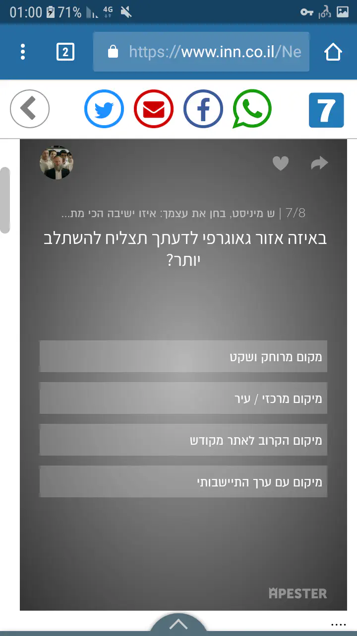 אני עניתי- לימוד אמונה ועבודת ה', הסדר מרכז, ומיקום עם ערך התיישבותי (למה לא כתבתי מקום שקט?