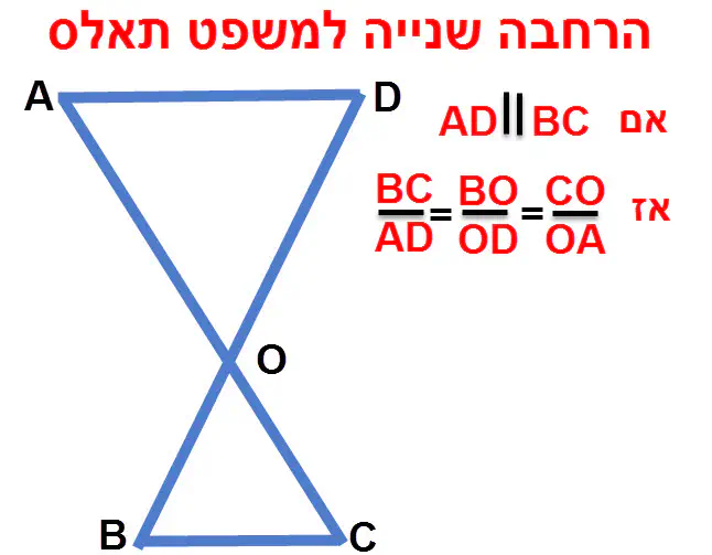 (תדמיין שיש גם את שוקי הטרפז שם)כיוון שזה טרפז הבסיסים מקבילים המשפט עובד שם. מה שהמשפט אומר זה שהקטע שהנקודה בה האלכסונים מתחלקים מחלקת אותם לחלקים פרופורציונליים. מה שצריך להוכיח זה רק שהם לא שווים בגודלם (הבסיסים או האלכסונים).