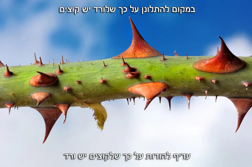כולם עצובים שלוֵרד יש קוצים אבל אני שמח שלקוצים יש ורד.