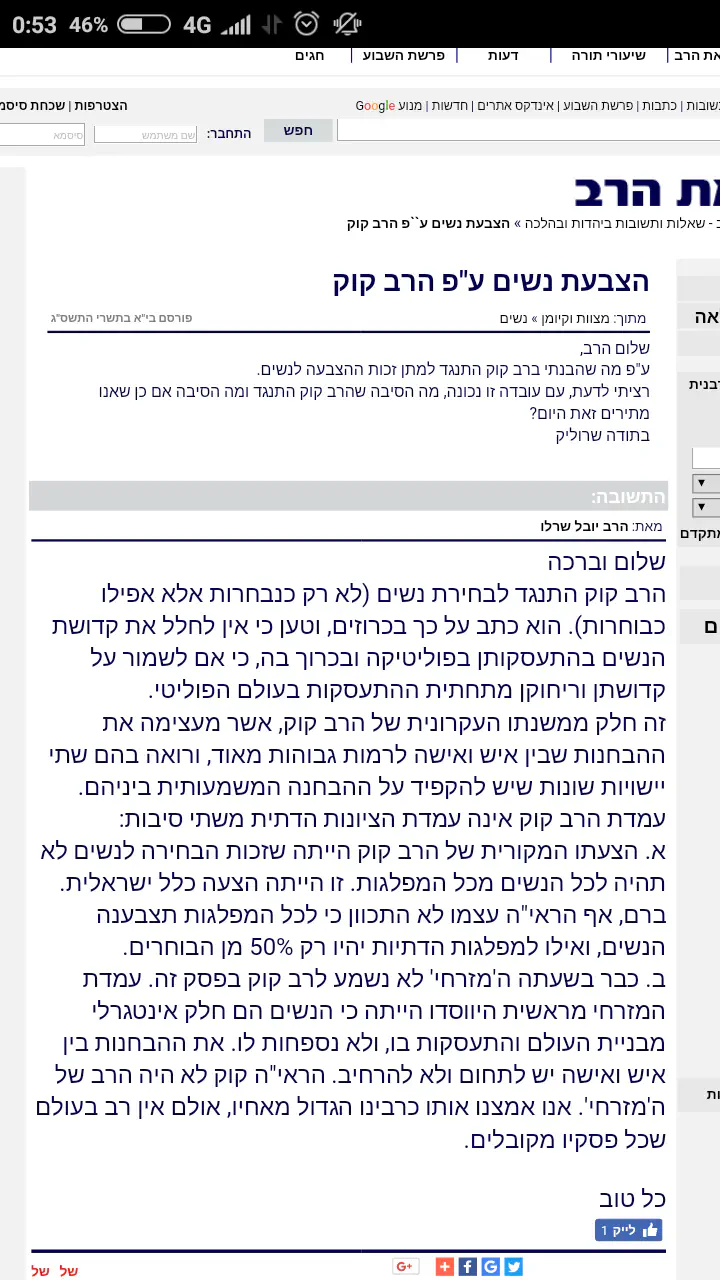 .. עכשיו ברצינות..הרב קוק בעד שנשים לא יצביעו.. שלא ינהלו.. זה שיא השובניזם.. לא אמרתי שפמיניזם סותר דת.. אמרתי שפמיניזם סותר הרב קוק.. ואל תעבדי על עצמך..