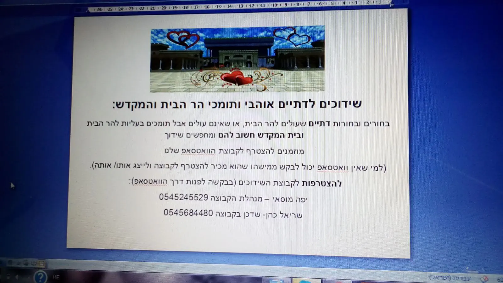 שידוכים לדתיים אוהבי הר הבית והמקדשיפה מ.