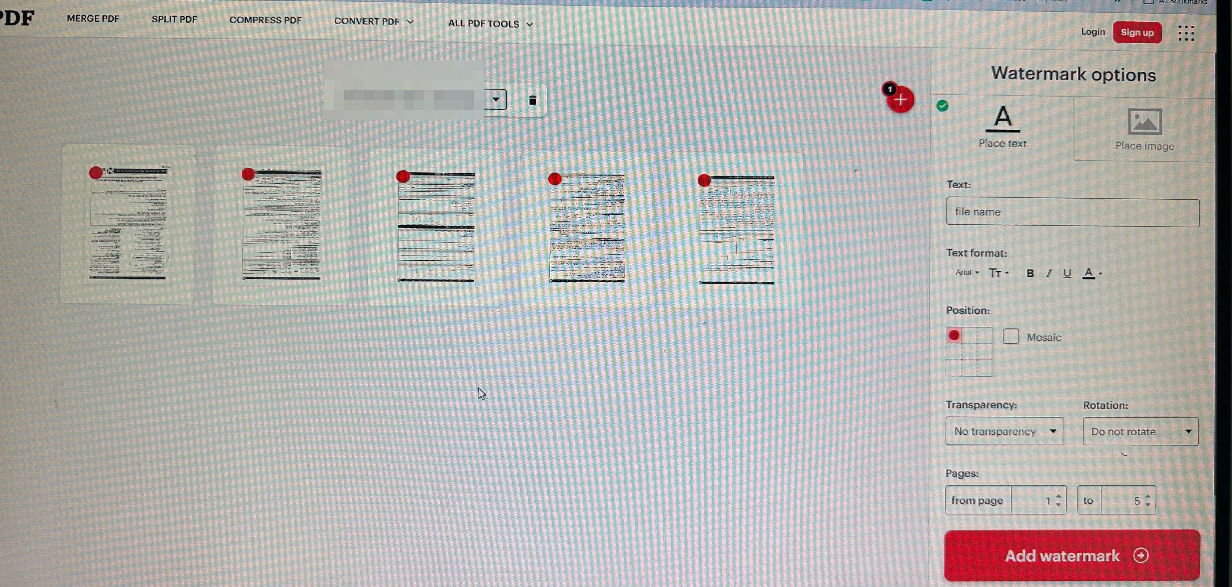 iLovePDF מאפשר להוסיף מספרי עמודים או טקסט חופשי.