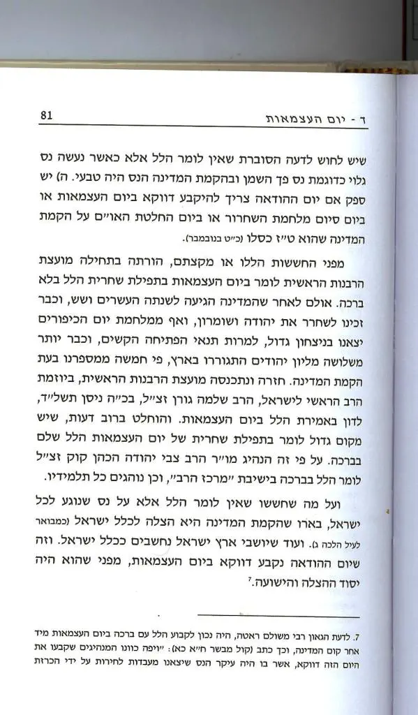 "ראוי להעריך את הנס והמתנה שה' שלח לנו ולהודות לו בהלל עם ברכה. ובנוסף- להשלים את החסר- לתקן ולהטיב את המדינה".