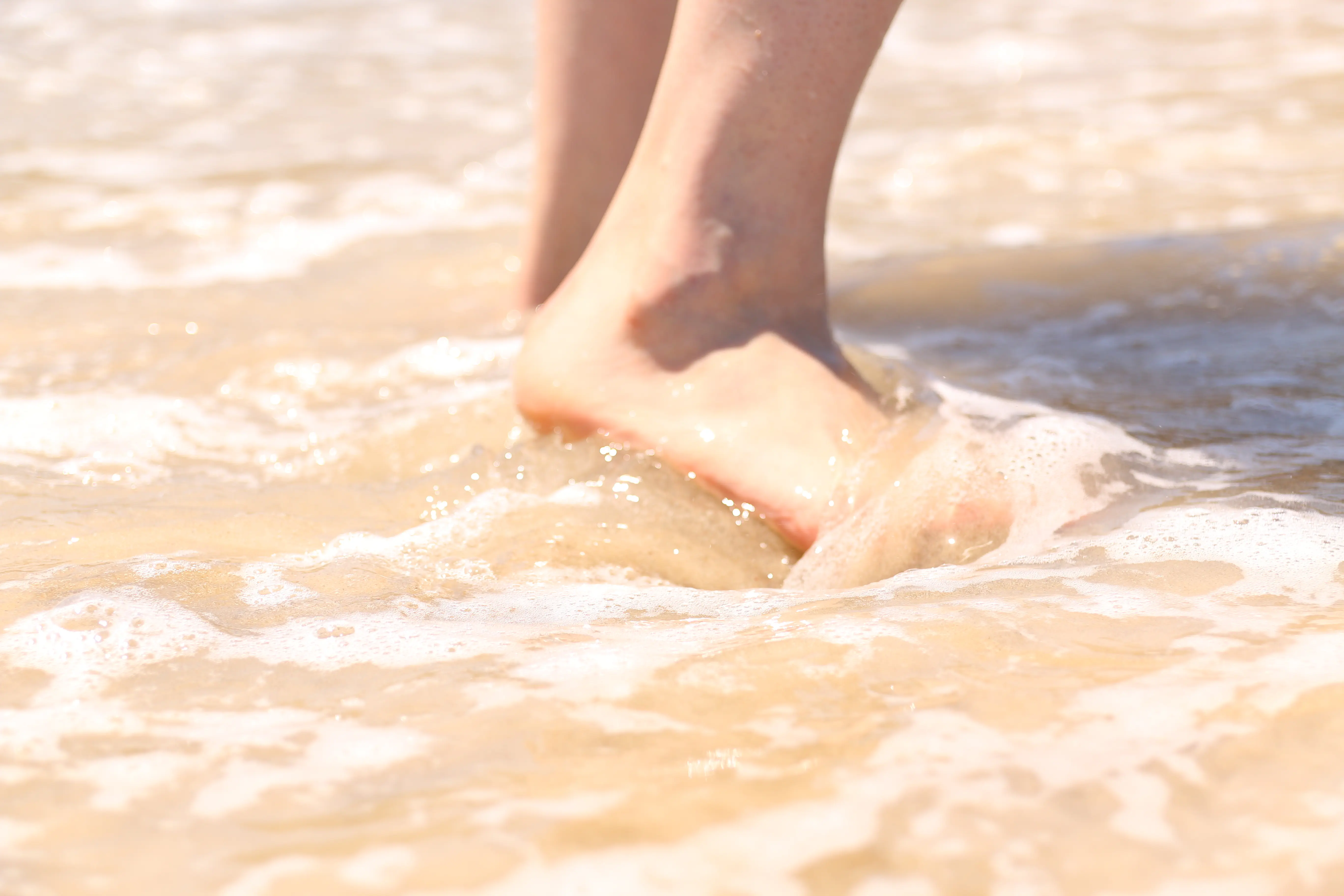ומנסה לתפוס כמה טביעות אצבעות רגליים על החול היבש