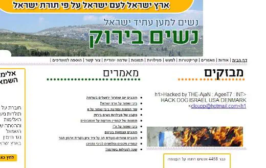 האקרים, ככל הנראה, מדנמרק הצליחו לפרוץ לאתר האינטרנט של ארגון הימין "נשים בירוק" ושתלו באתר תמונות בהן נראה דגל ישראל עולה באש.