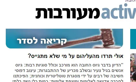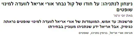 לאולפנים השונים הוזעקו מומחי משפט כדי להבהיר לנו עד כמה נורא המצב שבו חברי הכנסת אורי אריאל ודוד רותם יכהנו בוועדה הנחשקת. ב'קול ישראל', לדוגמא, אמר הפרשן המשפטי משה הנגבי שהמציאות החדשה אכן מדאיגה, אבל הפליא לעשות 'הארץ' שלא חשש להנפיק כותרת מדהימה בגילוי הלב שבה. תנו מבט, אבל בזהירות: