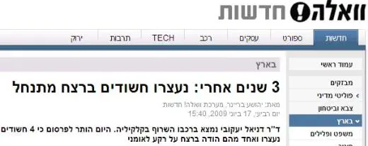 גולשים רבים שיגרו לתשומת ליבי בזעם את כותרת הכתבה ב'וואלה' שדיווחה על לכידת חוליית רוצחיו של ד"ר דניאל יעקבי הי"ד, תושב הישוב יקיר. “לא רצח ישראלי, לא רצח רופא, לא רצח יהודי, לא רצח בשומרון, אלא רצח מתנחל.”, כתב לי גולש שחפץ בעילום שמו. “הבנתם? אין לו שם או זהות או משפחה הוא לא יהודי הוא פשוט מתנחל!!“, כותב אבידן משילה, וכך עוד רבים אחרים בעקבות אותה כותרת.
