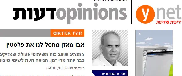 לא כל כך ברור לי איך הפך אתר YNET לאתר שבאופן רשמי מעודד לכאורה אלימות טרוריסטית פלשתינית. אחרת קשה לי להבין איך ניתנה בימה לזוהיר אנדרוס לפרסם את מאמרו המבקר בחריפות את אבו מאזן על מה שנראה בעיניו כהתמתנות מצידו. הדברים אמנם נכתבים במאמר דעתני אבל קשה לי להניח שכל מי שהיה מבקש לתת לגיטימציה לאלימות שאינה פלשתינית היה מקבל את הזכות לפרסם את דבריו.