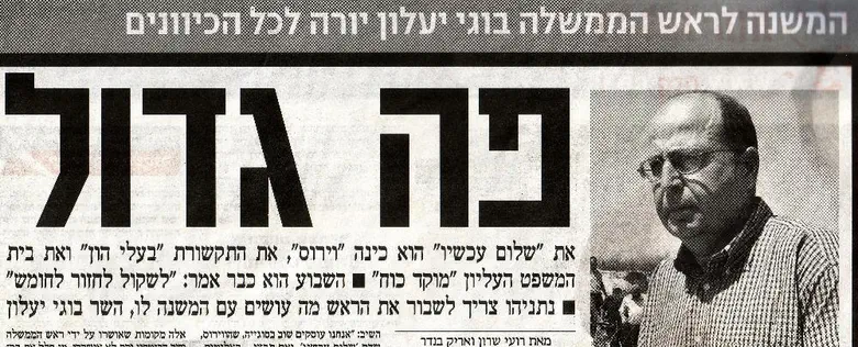 ובעמוד פנימה הם מכנים אותו "פה גדול". כולנו יודעים שלא מדובר במסקנה שהגיעו אליה עורכי העיתון לאחר מדידות שביצעו להיקף שפתיו. מדובר בגידוף וקינטור, על סף המונח "העלבת עובד ציבור". אבל על יעלון זה מותר כי הוא הרי מעז, לא עלינו לחלום על שיבה לחומש, ולא עלינו ולא על בנינו הוא מסרב להצטרף לחגיגות השלום.