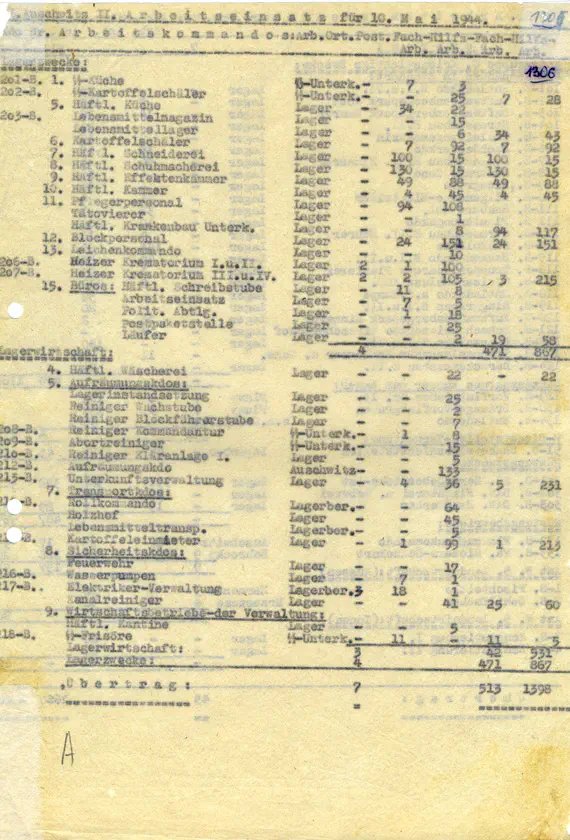 לקרמטוריום 1-2 הוקצו 100 עובדי כפייה יהודים ומשגיח גרמני אחד.