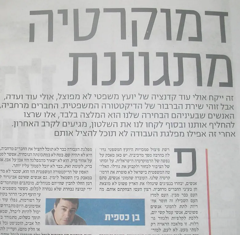דברים מפתיעים כתב בן כספית ב'מעריב' ונראה שדרוש לא מעט אומץ לכתוב דברים כאלה כל עוד אתה לא איש ימין יושב גבעות וחובב הפגנות נגד בית המשפט העליון. ממש משום כך הנה לכם כמה ציטוטים מתוך דבריו על פרשת פיצול סמכויות היועץ המשפטי: