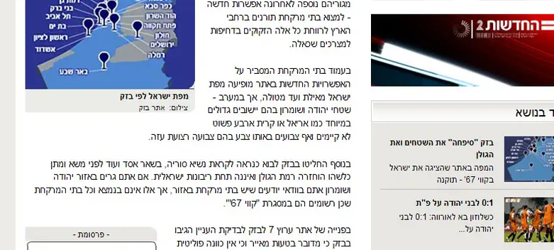 והכתבה הראשונה - עם הפסקה האחרונה שנפתחת במילים "בפניה של אתר ערוץ 7...":