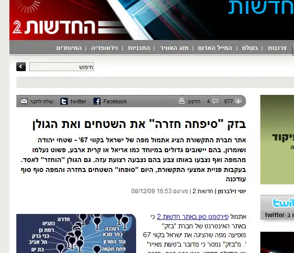 השבוע דיווחנו כאן על המו"מ שקיימנו עם חברת 'בזק' בדרישה לשנות את המפה שמופיעה באתר החברה ובה לא קיימים לא הגולן ולא יו"ש. כזכור, בחברה הבטיחו לתקן כבר למחרת היום. העניין תוקן אמנם, אבל בתחילה רק בחלקו, אבל לא כאן המקום להאריך על כך.