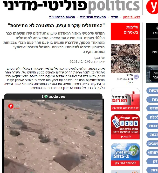 עידו צפה בכתבה תחת הכותרת "המתנחלים עוקרים עצים, המשטרה לא מתייחסת". הוא גם צפה בסרטון שהוצמד לכתבה וציפה לראות גדמי עצים עגומים, אך גילה תמונה אחרת לחלוטין. הנה השאלות שלח אלינו: