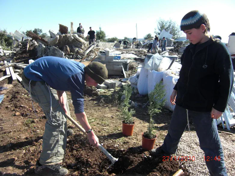 תושבי נחליאל בנו היום (רביעי) מחדש את בית הכנסת בגבעת מנחם, שנהרס אתמול על ידי כוחות הביטחון.