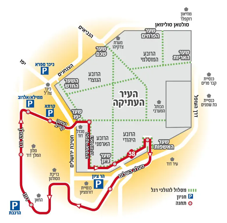 דידי הרשקוביץ, מחזיק תיק התחבורה בעירייה, מסר כי התוכנית "דרך חדשה לעיר העתיקה", שהוכנה באגף תושי"ה בעיריית ירושלים ובצוות תוכנית אב לתחבורה, תצא לדרך ביום א' הקרוב (ל' בשבט - 14 בפברואר). במסגרתה יופעל הסדר מיוחד ב-3 חניונים - "הרכבת"- חניה חינם, "קרתא" - 15 ₪ לכל היום לתושבי ירושלים ו- 25 ₪ למבקרים בעיר, וחניון "ממילא/ אלרוב" – חניה חינם לשעתיים הראשונות. כמו כן, מסלול קו 38 יקוצר, ועם הפעלת התוכנית יאסוף את הנוסעים, גם מהחניונים הללו, היישר לתוך העיר העתיקה, בתעריפי נסיעה מוזלים ומיוחדים. כל שעה עגולה ייסע קו 38 במסלולו הארוך והמוכר ומספרו יהיה 38א'. הרשקוביץ שיבח את משרד התחבורה על הירתמותו לפרויקט, בו משקיע המשרד מאות אלפי שקלים בסבסוד כרטיסי הנסיעה המוזלים ב"קו החניונים" 38.