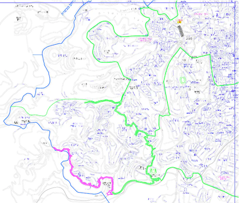 קו ירוק כפול - מציין את תוואי העירוב הרובעי הקיים והמאושר בדרום מערב העיר