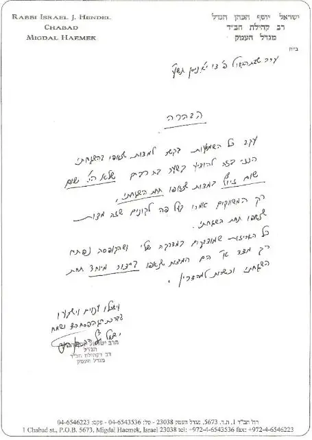 רב קהילת חב"ד במגדל העמק, הרב יוסף הנדל, מבהיר כי לא זוייפו מצות תחת שמו, "עקב כל השמועות בקשר למצות שנאפו בהשגחתי, הנני בזה להודיע בשער בת רבים שלא היה שום זיוף במצוות שנאפו תחת השגחתי, רק המשווקים אמרו בעל פה לקונים שזה מצות שנאפו בהשגחתי. כל האריזות שמודבקים במדבקה שלי ושהקופסה נפתח רק מצד א', הם המצות שנאפו בייצור מיוחד תחת השגחתי וכשרות למהדרין", הודעת הרב.