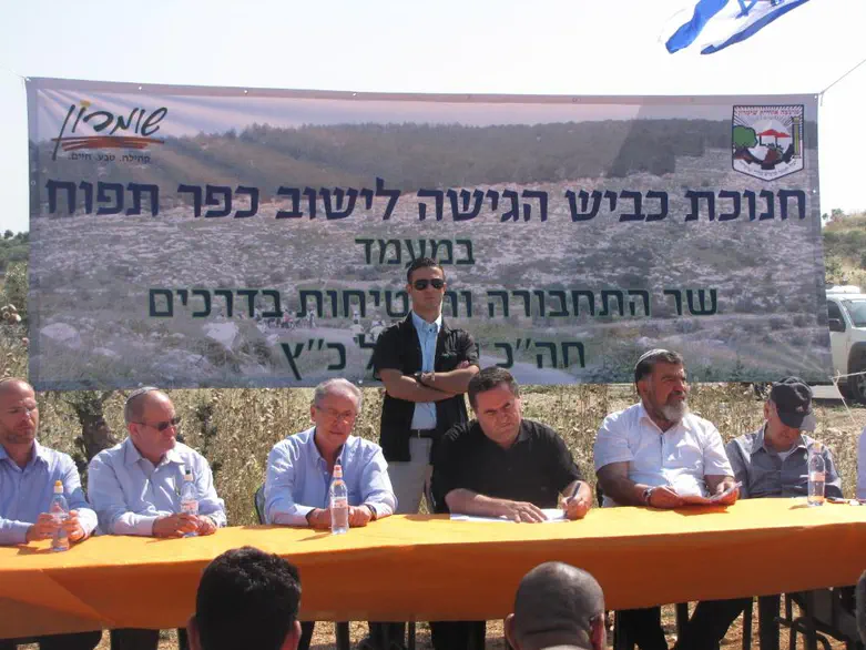 בישוב תפוח חנכו שר התחבורה כץ וראש מועצת שומרון מסיקה את כביש הגישה לישוב.