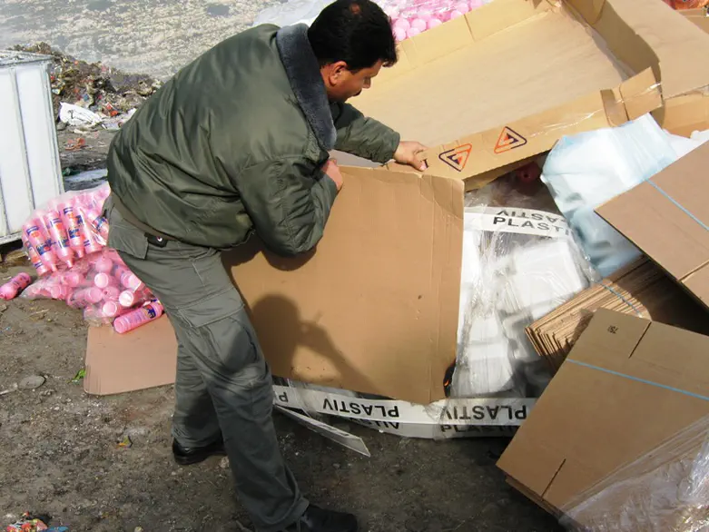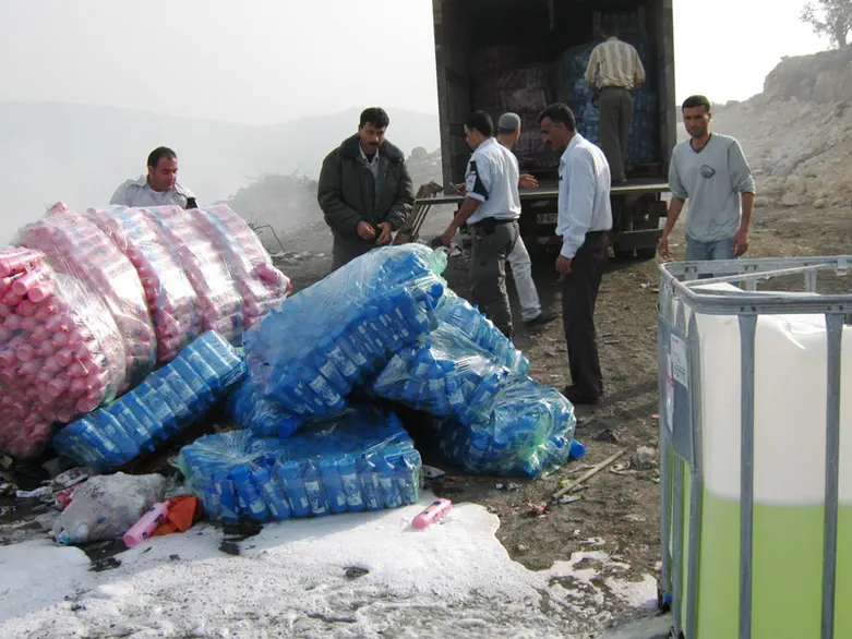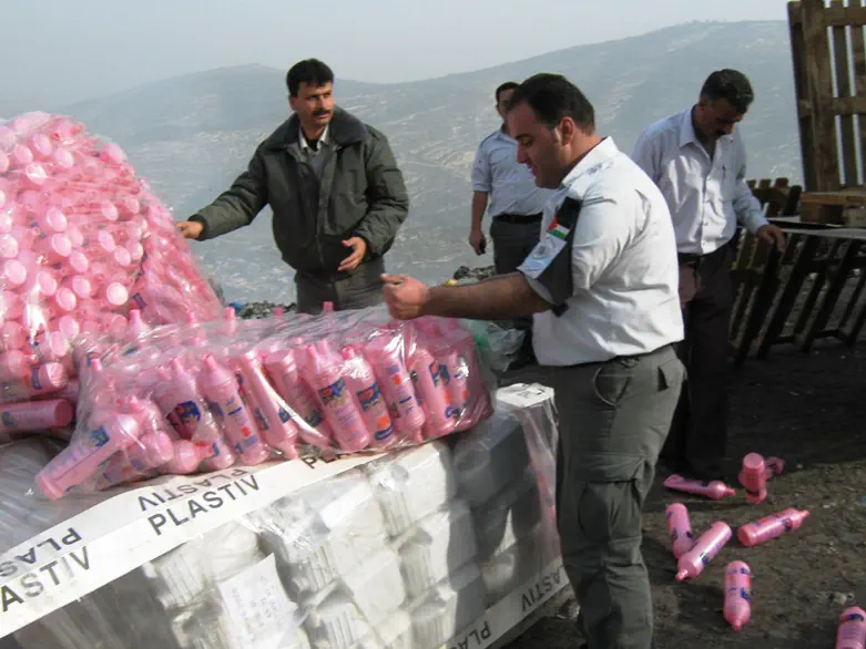 אנשי מחלקת המכס והמע"מ הפלשתינאים תועדו כאשר הם שורפים מוצרים שיוצרו במפעל.