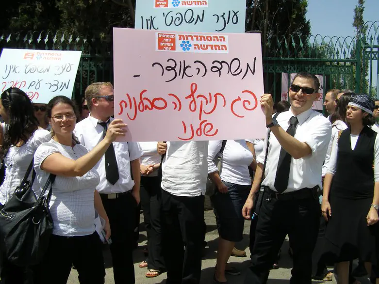 העוזרים המשפטיים ערכו היום לראשונה הפגנה מול משרד האוצר בירושלים וקיימו השבתה בת יום אחד. זאת בעקבות התנגדותם של הנהלת ביהמ"ש והנהלת משרד האוצר להכיר בהתארגנות העובדים ולחתום על הסכם קיבוצי. במסגרת השביתה יתכנו שיבושים ועיכובים בעבודת ביהמ"ש ובדיונים.