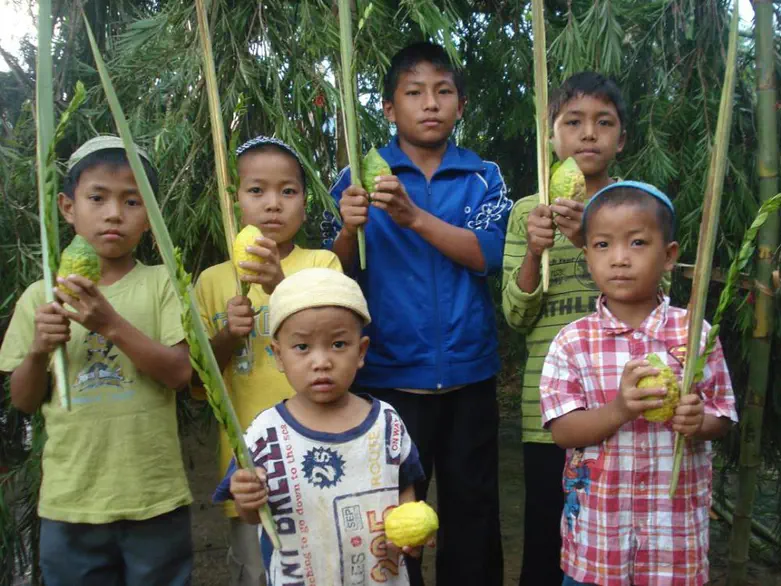 בני המנשה בצפון מזרח הודו זכו לחגוג השנה את חג הסוכות עם ארבעת המינים שנשלחו אליהם מישראל בזכות הסיוע של ארגון "שבי ישראל".