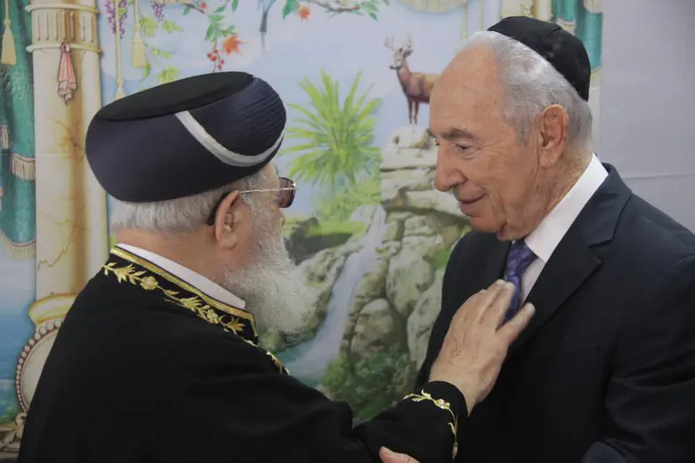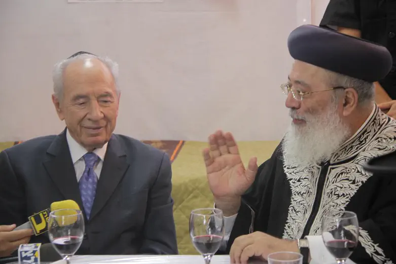 נשיא המדינה, שמעון פרס, קיים הבוקר (שלישי) סבב ביקורי חג המסורתי בסוכותיהם של הרבנים הראשיים לישראל, שלמה עמאר ויונה מצגר, ובסוכתו של הראשון לציון הרב עובדיה יוסף. הנשיא העלה בפגישותיו את החשיבות של תמיכת הרבנים באמצעות פסיקותיהם בתהליך השלום ובפרט בשיחות השלום בין ישראל לפלשתינאים והדגיש כי הוא רוחש כבוד רב והערכה לפסיקותיו של הרב עובדיה בעבר שהדגישו כי פיקוח נפש דוחה שטחים.