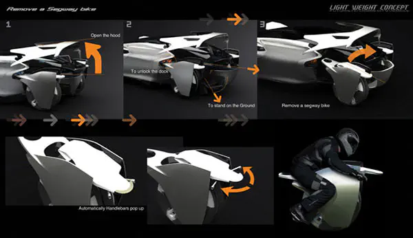 בכדי לשנות את צורת המכונית צריך בסך הכל לפתוח מכסה מנוע, להסיר פגוש והנה האופנוע מוכן לפעולה. האבטיפוס המדובר נקלט כבר במספר מותגי רכב כדגם פיתוח עתידי, המשמעות היא שעוד שנתיים שלוש, מאוד ייתכן שנראה את המכונית החדשה ברחובות ישראל.