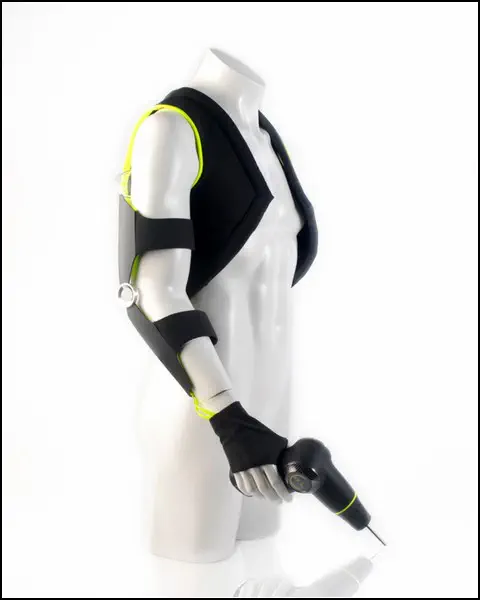 זרועותיה של החליפה צוידו במחזקים אלקטרומגנטיים: החיישנים קולטים את תנועתו של הפועל בעת שזרועו מתקפלת - מנוע חשמלי "תופס" את תנועת היד ואף מחזק אותה. החיזוק לעיתים מגיע עד 2/3 מסך מאמץ כדברי המפתח.