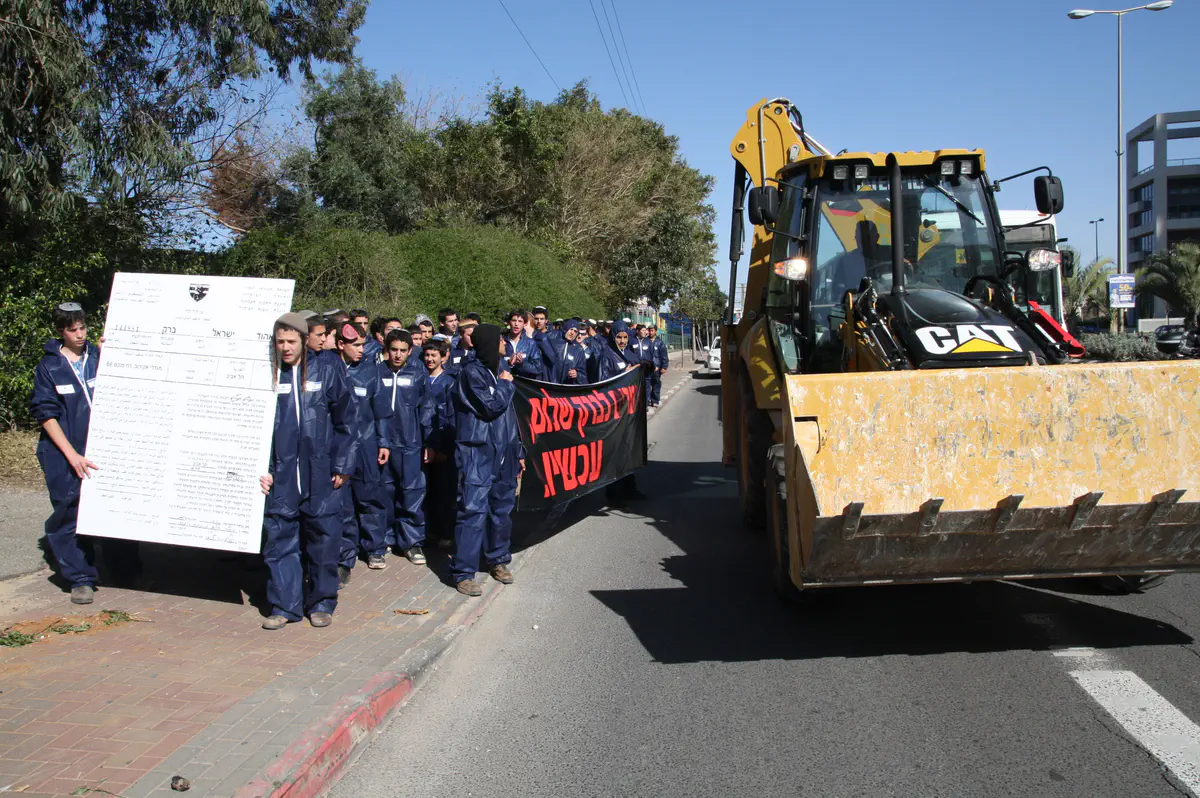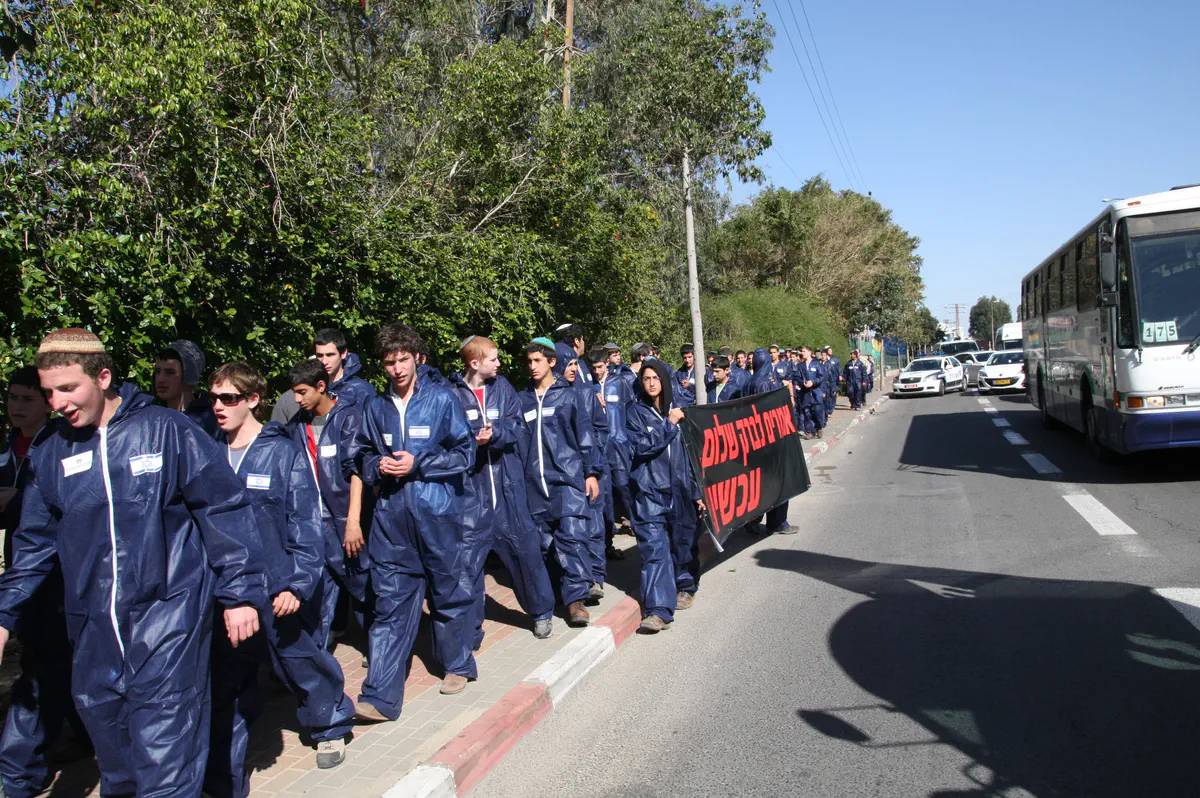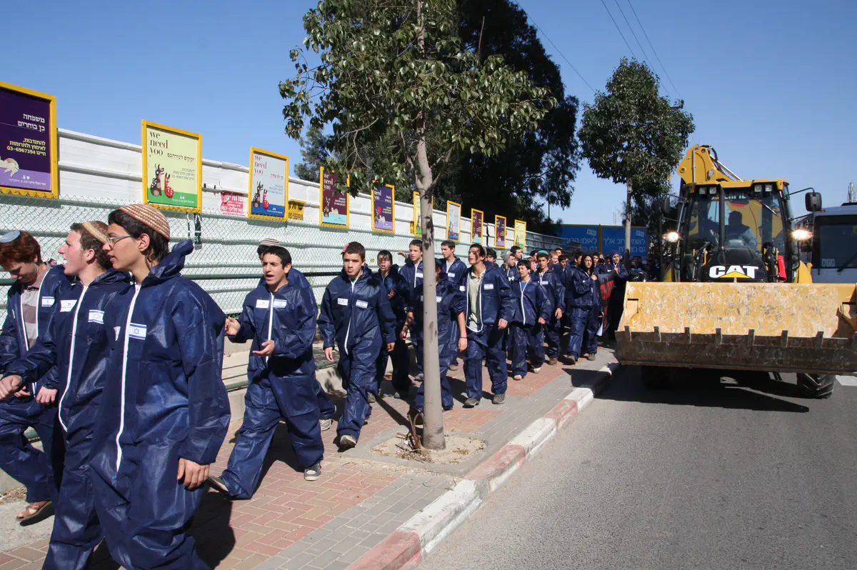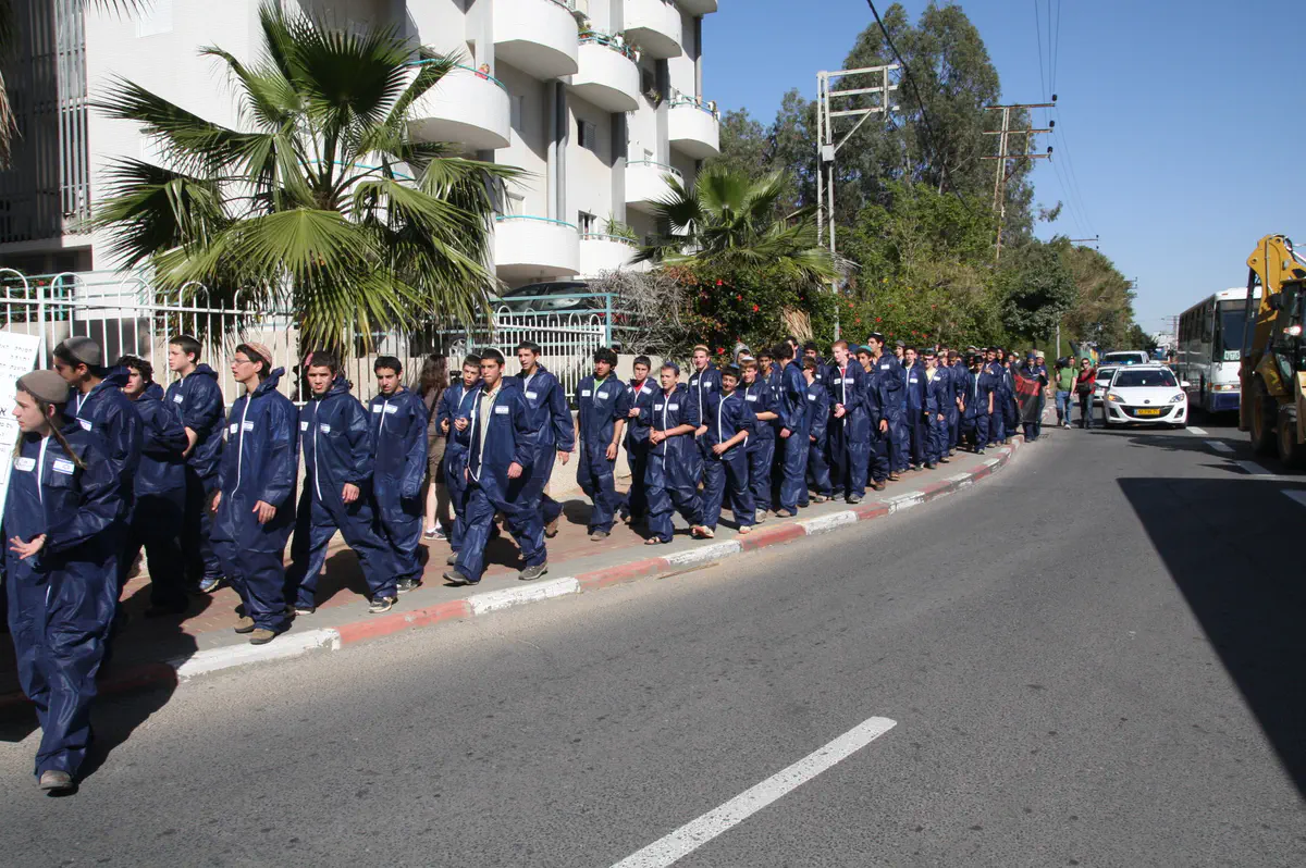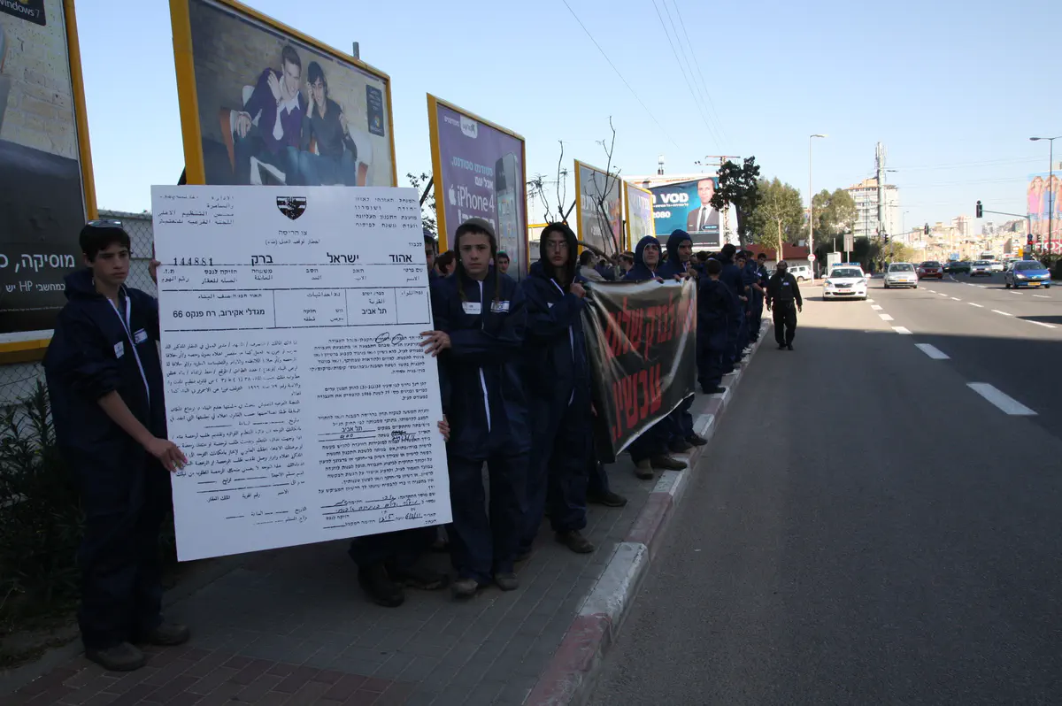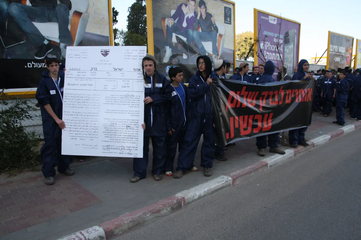 בשעות הצהריים צעדו לכיוון ביתו של אהוד ברק במגדלי אקירוב בני נוער מאיתמר שהתלבשו כשוטרי יס"מ, כשהם לובשים סרבלים כהים ועליהם דגלי ישראל קטנים. בראש צעדו שני בני נוער ואחזו צו הריסה ענק לביתו של ברק במגדלי אקירוב. למפגן הצטרף גם טרקטור שנועד ל'הריסת הבית'.