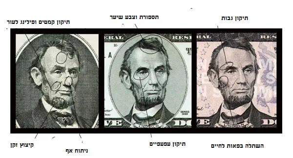 תמונתו של לינקולן הופיעה לראשונה על שטר 5 דולרים בשנת 1923 (התמונה משמאל). השטר זכה לעיצוב מחדש בשנת 2000 (תמונה באמצע) ו-2006 (תמונה משמאל). אם נתבונן היטב בשטרות החדשים, נראה כי לנשיא לינקולן נעשה פילינג ממש בעור הפנים, כל כתמי העור הוסרו מפניו. הנשיא קיבל תספורת חדשה וצבע את שיערו. הזקן המוכר כל כך, גם הוא עבר תספורת וקוצץ. בתמונה הנשיא נראה פחות מרושל. לנשיא לינקולן אפילו סדרו גבות! המנתח הפלסטי שבחן את התמונה טוען גם שנעה תיקון פלסטי לאף של לינקולן, וקצה האף נראה יותר ישיר.