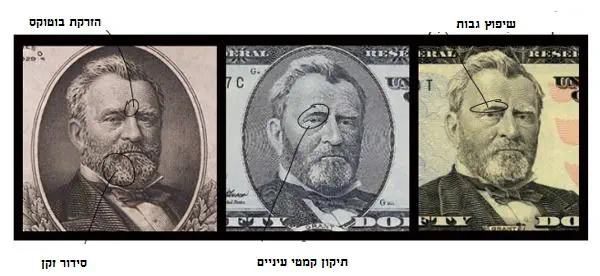 שטר של דולר עם אנדרו ג'קסון הודפס לראשונה בשנים 1920-28 (התמונה השמאלית ביותר), עוצב מחדש ב- 1998 (במרכז) וב2003 (תמונה ימנית). רופאים פלסטיים שצפו בתמונה טוענים כי לנשיא ג'קסון ממש נעשה ניתוח פלסטי מסובך, בכדי להצעיר אותו. זריקות בוטוקס באזור סנטר והאף בכדי להסתיר קמטים. נעלמו קמטים מתחת לעניים, הנשיא נראה פחות עייף. מעבר לכך כנראה הנשיא "עבר אצל ספר" שיערו סודר בפן. "ג'קסון נראה פחות "גברי" מאשר בשטרות הקודמים" – מעיר על השינוי מנתח פלסטי מניו יורק דיוויד אידאלגו.