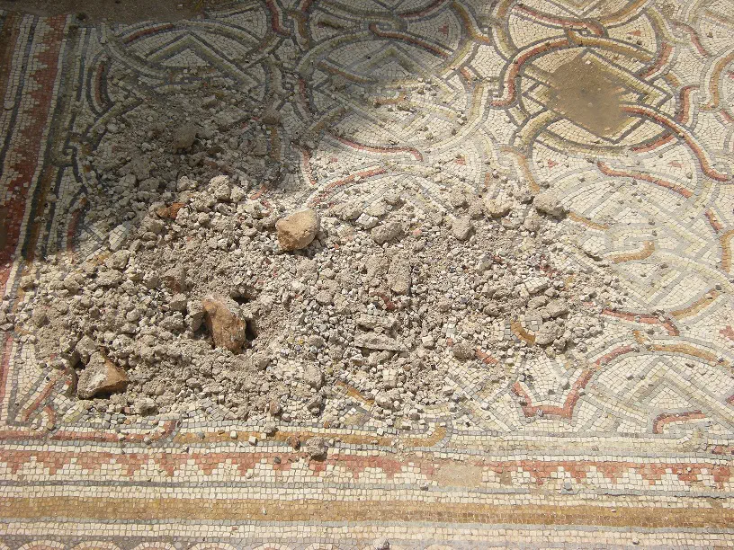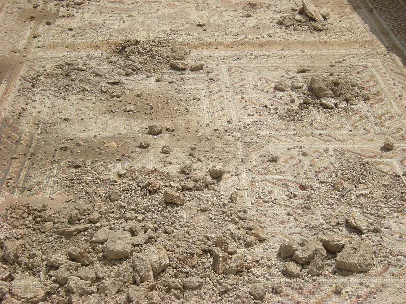 אתמול נתגלה כי אלמונים פקדו את האתר באישון לילה והשחיתו באופן מכוון חלקים נרחבים מרצפת הפסיפס באתר. ציורים צבעוניים של דגים שוחים בנהר, ולהקת חוגלות בין פרחי שושנה שהורכבו לפני כ- 1500 שנה מאלפי אבנים קטנטנות נותצו באופן מכוער ומכוון. הארכיאולוג ומפקח ביחידה למניעת שוד עתיקות ברשות העתיקות, שנמנה עם חופרי האתר, אלון קליין, גילה הבוקר לתדהמתו את הנזק שנגרם לאתר.