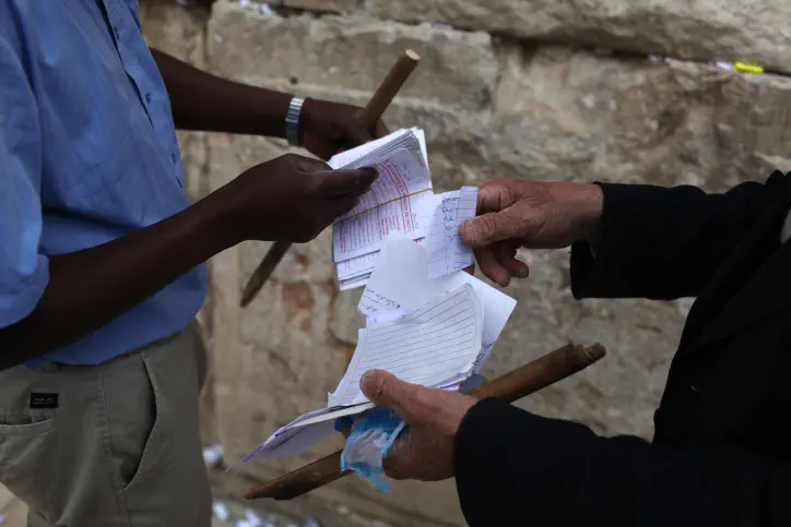 ברחבת הכותל המערבי נערכים לקראת חג הפסח הקרב ובא. במסגרת זו החלו לפנות את הפתקים הרבים שנטמנו בין נדבכי הכותל המערבי, שיועברו בימים הקרובים לגניזה.
