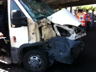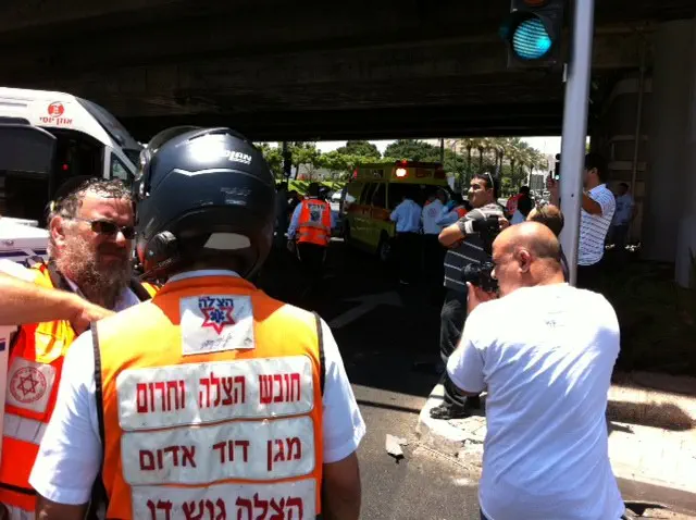 תאונת דרכים אירעה בשעות הצהריים (ראשון) בצומת הולץ בת"א בין אוטובוס למיניבוס. חובשי 'איחוד הצלה' שהגיעו למקום טיפלו ב- 50 נפגעים באורח קל חלקם ילדים מתוכם 5 בינוני שפונו לבתי החולים, צלם "חדשות 24" - שמעון לביא תיעד.