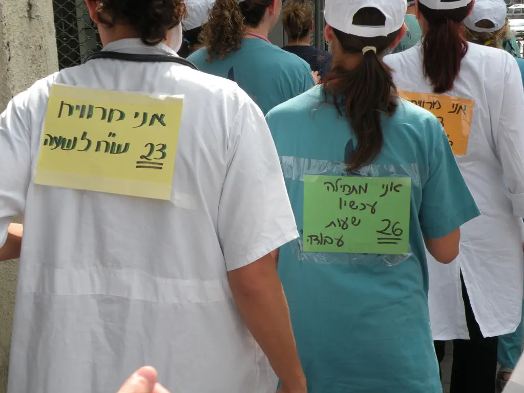 היו גם מתמחים אשר נערכו מבעוד מועד עם 'סדרת שלטים', כאשר ארבעה מתמחים ביחד הרכיבו את הכתובת: "רופאים מותשים שווה מטופלים מתים".