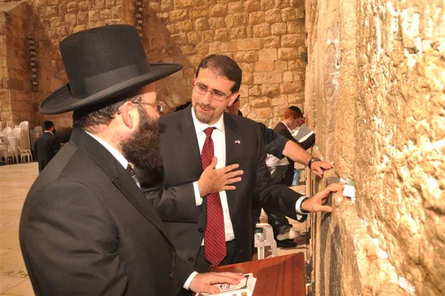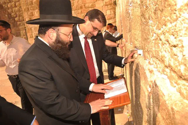 השגריר קיים תפילה עם רב הכותל ברחבת הכותל.