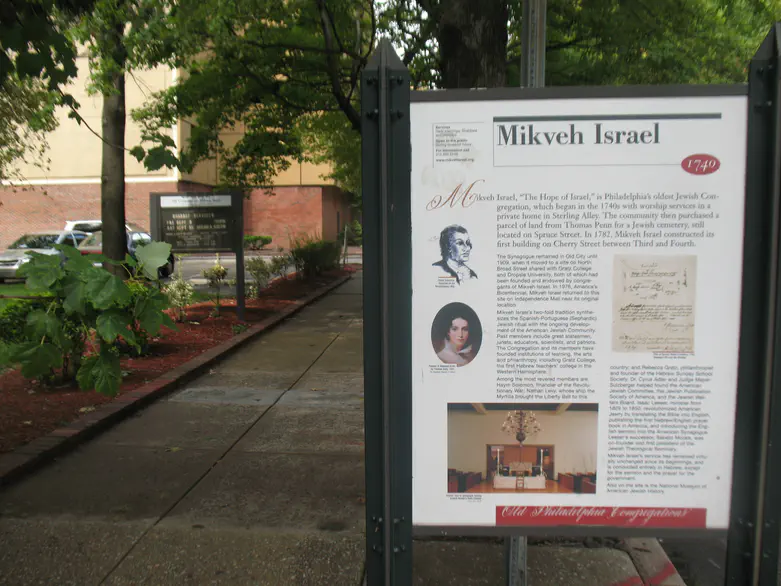 בית הכנסת של קהילת מקווה ישראל נוסד ב-1740, וזהו בית הכנסת השני בעתיקותו בארה"ב. חברים ידועים בקהילה מן התקופה הקולוניאלית ותקופת המהפכה הם: חיים סולומון, אחד המממנים העיקריים של המהפכה האמריקאית ( שתרם כסף לרכישת נשק לצבאו של וושינגטון); נתן לוי, שספינה השייכת לו, בשם מירטילה, העבירה את פעמון החירות לאמריקה; ורבקה גרץ, פילנתרופית ומייסדת בית הספר הראשון ללימודי יהדות בסוף השבוע.