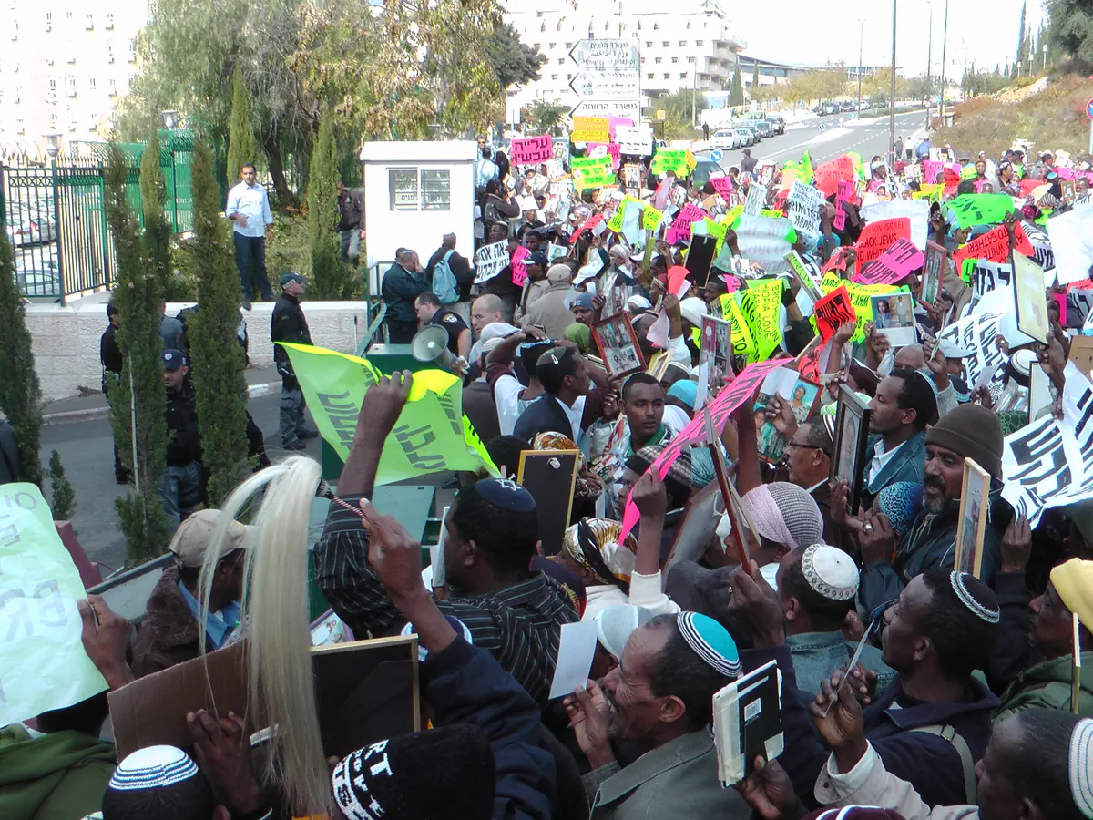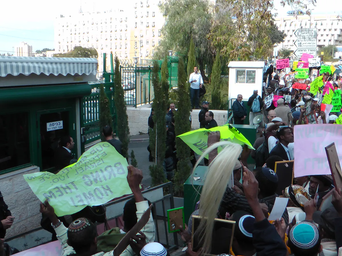 מאות מעולי אתיופיה הפגינו מול משרד הקליטה והפנים בירושלים. המפגינים, הנושאים שלטים עליהם נכתב, "עצירת קליטת העולים מנוגדת לציונות". חלק מהמפגינים פרצו את הגדרות וחוסמים את הכביש מול הכניסה למשרד. כוחות משטרה הודפים אותם.